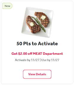 meat department $2 off redeem 50 points ($.50) in GO Rewards to activate activate & use by 11/27 |
